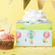 Hot air balloon on pastel blue background. wrapping paper