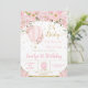 Hot Air Balloon Pink Floral Flowers 1st Birthday Invitation
