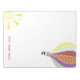 A notepad featuring a retro inspired illustration of a hot air balloon at top right and sun at bottom left. Personalise with your name at bottom.