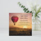 A romantic wedding invitation featuring a colourful hot air balloon over a dreamy landscape at sunset. This invitation also has a matching RSVP card and is part of a wedding collection.