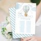 Sophisticated classic "Baby name race" game designed for a baby boy shower, adorned with a charming teddy bear flying with hot air balloon and message 'Adventure waits'. Engage your guests with this delightful game, perfect for adding fun and excitement to your celebration while creating cherished memories.
