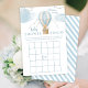 Sophisticated classic "Bingo" game designed for a baby boy shower, adorned with a charming teddy bear flying with hot air balloon and message 'Adventure waits'. Engage your guests with this delightful game, perfect for adding fun and excitement to your celebration while creating cherished memories.
