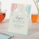 Have your guests bring some diapers to your baby shower and participate in a raffle. It's a great way for the parents-to-be to stock up on some much needed diapers while hosting a fun activity. This beautiful sign features pastel colored hot air balloons and white clouds on a beige background. Matching items can be found in our 'Up & Away Pastel' collection.