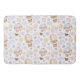 A bath mat with a cute and whimsical pattern. Hot air balloons and cute clouds with faces among stars and hearts and balloons. Soft pastel colours make up this adorable design. A white square layered over top with your text inside.