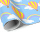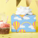 A wrapping paper designed with a hot-air balloon and rainbow pattern on blue. Customise the blue background among other options.