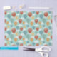 This patterned tissue paper features my painted illustrations of hot air balloons and white clouds against a soft blue sky. Balloons in red, yellow, green, blue and orange illustration this gender neutral, any occasion gift tissue.