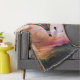 A quality printed throw has its advantages. This is a much finer weave throw than its loopier cousins, and though lighter, it is worth the investment for custom room accessorizing. The back is much prettier than the typical brown, and the fringe on the long sides very vivid, the selvage nicely done. Before photographing, I washed the throw in cold water, delicate, with a thicker woven throw the same size. On tumble dry low, this throw was dry in half the time as the other. This is a very practical quality if you use throws for furniture covers or to wrap up in frequently. The sleekness of the fabric makes it a great layer for accenting or protecting without the feeling of sitting on too much stuff. Perfect for napping or when you feel a light chill coming on. The color printing is beautiful and on this fabric, matched the design and color of my Photoshop image. This is an advantage for blending room fabrics and colors. The fringe on the short sides prints the colors from the design image and therefore varies from the side fringe. I streaked a white fractal line through the plaid pattern to give the illusion of weaving. This printed as crisp as an illusory thread, and put some white in the short side fringe, showing another advantage of print vs loomed- for artistic purposes, line lines, detail, and color integrity can be planned and preserved. My loomed throws have color limitations and more of a needlepoint texture. Print throws reproduce an exact image. The throw felt a little stiff straight out of the package, but this went away in the first delicate wash. Of course I searched the wash water for ink or bleeding and there was none.