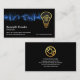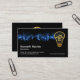 A blue electrical pulse streaks across the darkness and lights up a gold "bulb home". You are that electrician that brings light into homes. Directly below the bulb is a slogan option to publicise your service ; Change the caption remarks to the slogan to suit your own needs. Your prestigious name, job title and the contact details are located to the left side of the card.