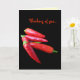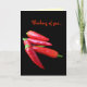 This friendship card features brilliant scarlet red hot chilli peppers on a pure black background. More peppers are inside. The text can be customised to suit your needs.