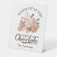 Christmas Hot Chocolate Pedestal Sign with hot chocolate mug and gingerbread cookies in pink, beige and brown. Elegant and cute Christmas design. Easily personalise the name. - Kate Eden Art