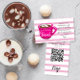 Add a charming touch to your festive treats with this pink hot chocolate bomb instruction card, featuring a cute pink mug of cocoa topped with cream and sprinkles on the front, and a matching pink striped back with space for your business details and QR code.