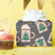 Beautifully designed Christmas wrapping paper featuring hot chocolate mugs with Christmas trees on them.