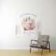 Christmas Birthday Party Backdrop Tapestry with hot chocolate mug, trees and gingerbread in pink, dark beige and green. Elegant and cute Christmas design for girls of all ages. :) Easily personalise the text. - Kate Eden Art