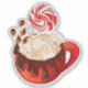 This appealing and cosy illustration features a red mug overflowing with rich hot chocolate and decadent toppings. The drink is finished with a layer of fluffy marshmallows or whipped cream, a chocolate drip, two wafer sticks, and a prominent red and white peppermint lollipop. This detailed graphic is perfect for die-cut stickers, winter-themed mugs, baking accessories, or any product celebrating cosy winter drinks and treats.
