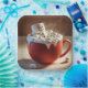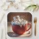 A cheerful marshmallow snowman relaxes in a steaming cup of hot chocolate, surrounded by whipped cream and mini marshmallows