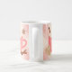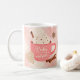 Enjoy sipping hot chocolate from this mug! This design features a warm mug of hot chocolate with whip cream on top surrounded by cinnamon and sweet gingerbread cookies on a pink plaid background.