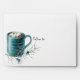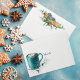 Add a festive touch to your holiday greetings with our Hot Chocolate with Cookies and Greenery Watercolor Envelope. This envelope features a charming watercolor design. the front show cases a striped teal cup of hot chocolate with marshmallows adorned with a single branch of evergreen and berries. The back flap showcases a delightful pile of Christmas cookies surrounded by vibrant berries and greenery. To add even more cheer, the inside of the envelope is lined with a repeating pattern that includes cups of hot chocolate, holly, Christmas cookies, pinecones, and Christmas greenery. Spread joy and warmth this holiday season with our beautifully designed watercolor envelope.