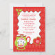 Cookies anyone? Nothing says the holidays more than a good old fashioned cookie exchange! Invite your family and friends over for some baked goods with this adorable cookie swap invitation. It's set on a red with white snowflake background. There's a white curvy tag in the centre. On the bottom left corner there's a green with red mug of hot chocolate with a penguin on the front. There's marshmallows and a striped straw coming out of it. There's a heart shaped cookie next to it. Use the back of this cute invitation to explain how a cookie swap works. Check out the many other designs we have.