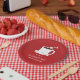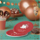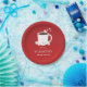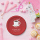 Choose these red, Christmas Hot Chocolate Party, paper plates that feature a smiling mug of hot cocoa with a candy cane and several cheerful marshmallows. These plates are fun and friendly, and will help bring the same mood to your party. All of the words can be customised.