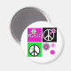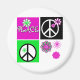 Our Hot Colours Peace design T-shirts, tote bags, mousepads, buttons, magnets, and other items feature hot lime green, black, and hot pink flowers and peace symbols and a message to promote world peace!