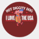 Hot Diggity Dog USA American Flag 4th of July Classic Round Sticker