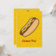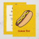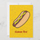 Hot Dog cartoon illustration. Junk food outline icons yellow pattern background. Custom text on both sides.