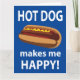 Hot Dog Makes Me Happy Hot Dog Card designed by Nisha Prabhu. Indulge in the simple pleasure of a hot dog with this fun and playful Hot Dog Makes Me Happy card! Perfect for any occasion, this design is sure to bring a smile to anyone's face. Whether you're celebrating a birthday, sending well wishes, or just saying hello, this card is a quirky and delightful way to share some joy. So go ahead, spread the happiness with a hot dog themed card today!