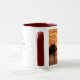 white mug with red rim and handle, picture of red, orange, yellow tropics sunset with palm trees, and text reads: "I don't have hot flashes. I have short private vacations in the tropics."