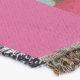 A quality printed throw has its advantages. This is a much finer weave throw than its loopier cousins, and though lighter, it is worth the investment for custom room accessorizing. The back is much prettier than the typical brown, and the fringe on the long sides very vivid, the selvage nicely done. Before photographing, I washed the throw in cold water, delicate, with a thicker woven throw the same size. On tumble dry low, this throw was dry in half the time as the other. This is a very practical quality if you use throws for furniture covers or to wrap up in frequently. The sleekness of the fabric makes it a great layer for accenting or protecting without the feeling of sitting on too much stuff. Perfect for napping or when you feel a light chill coming on. The color printing is beautiful and on this fabric, matched the design and color of my Photoshop image. This is an advantage for blending room fabrics and colors. The fringe on the short sides prints the colors from the design image and therefore varies from the side fringe. I streaked a white fractal line through the plaid pattern to give the illusion of weaving. This printed as crisp as an illusory thread, and put some white in the short side fringe, showing another advantage of print vs loomed- for artistic purposes, line lines, detail, and color integrity can be planned and preserved. My loomed throws have color limitations and more of a needlepoint texture. Print throws reproduce an exact image. The throw felt a little stiff straight out of the package, but this went away in the first delicate wash. Of course I searched the wash water for ink or bleeding and there was none.