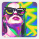 Hot Girl in Sunglasses Unique Modern Art Square Sticker
