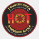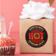 Hot with the letter O made of a flame circle with chilli peppers. Custom background colour. Four text fields to customise.