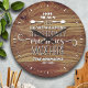 Pretty walnut woodgrain design you can personalise for your own unique family kitchen clock.