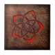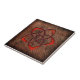 Hot orange celtic flower on leather tile