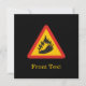 Triangle warning sign with a pepper and flame silhouette over black background.