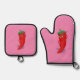 Hot Pepper Diva Drawing Custom Pink Oven Mitt & Pot Holder Set