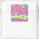 Hot Pin Fuchsia Modern Paisley Pattern Monogram Square Sticker
