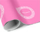 Hot Pink2 Wht Greek Key Rnd Frame Initial Monogram Wrapping Paper