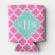 Hot Pink2 Wt Moroccan #5 Turquoise 3 Init Monogram Can Cooler
