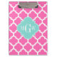 Hot Pink2 Wt Moroccan #5 Turquoise 3 Init Monogram Clipboard