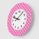Hot Pink #2 and White Polka Dots Pattern Large Clock