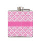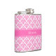 Hot Pink 2 Wht Damask #3 Hot Pink Name Monogram Hip Flask