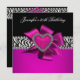 30th Birthday Party Hot Pink Zebra Black White Heart Jewel Silver Bow invitations all ages