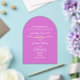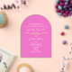 A bold and modern acrylic wedding invitation in vibrant hot pink, featuring elegant white and gold typography with a heart and ribbon motif. The arch shape and translucent acrylic material offer a stylish, high-end feel that makes a lasting impression. Perfect for glamourous, fashion-forward celebrations or destination weddings, this invite combines trend-savvy colour with luxury texture. Customise all text for your event and wow your guests with a chic, modern presentation.