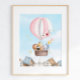 Hot Pink Air Ballon Safari Animals Poster