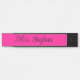 A simple modern minimalist curly calligraphy name design with a girly hot pink background on a door sign name plate.