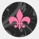 Hot pink and black Fleur De Lis Sticker, with black and charcoal grey swirl background