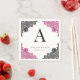 Hot Pink and Black Floral Lace Monogram Wedding Napkin