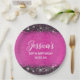Girly faux sparkly black glitter over a customisable foil brushed metal hot pink background colour. You can create your own 50th birthday party decorative small round paper plates. This classic elegant calligraphy hot pink plate will be perfect for your birthday.