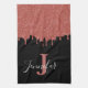 Hot Pink and Black Monogram Glitter Drips kitchen towel