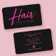 Hot Pink and Black Retro Script Hairstylist Business Card